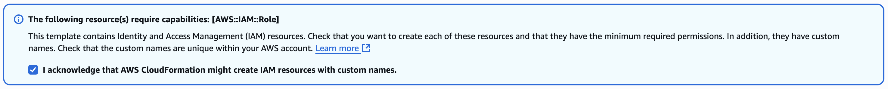 - Check the box that states "I acknowledge that AWS CloudFormation might create IAM resources with custom names".