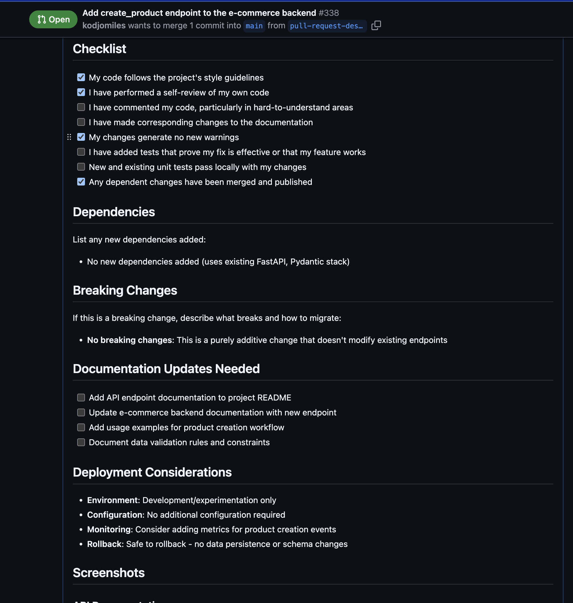 Together: A PR description that explains both what changed in the code AND why it matters to the business.
