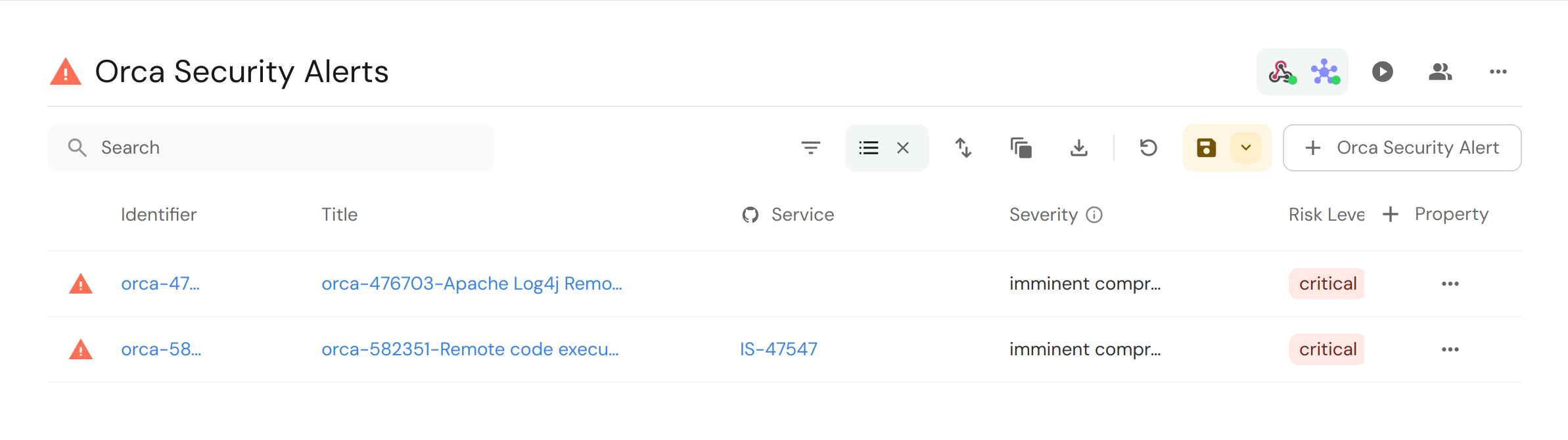 Given the above setup, you can take things a step further by mapping orcaSecurityAlert to service. Below are specified blueprint, webhook configuration and Python script for this mapping: