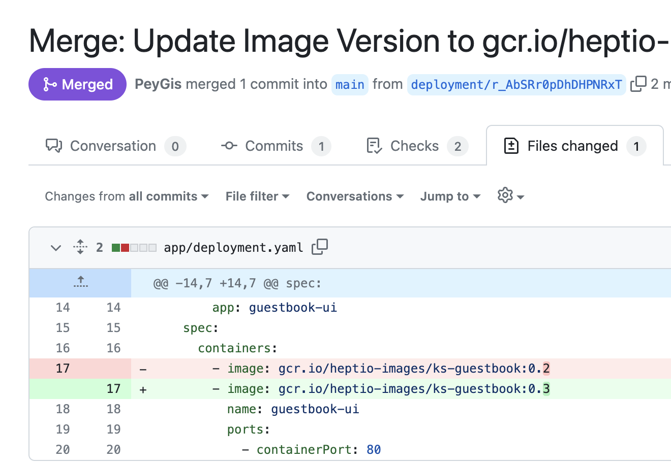 You should now be able to see a Github pull request created and merged for the argocd deployment.
