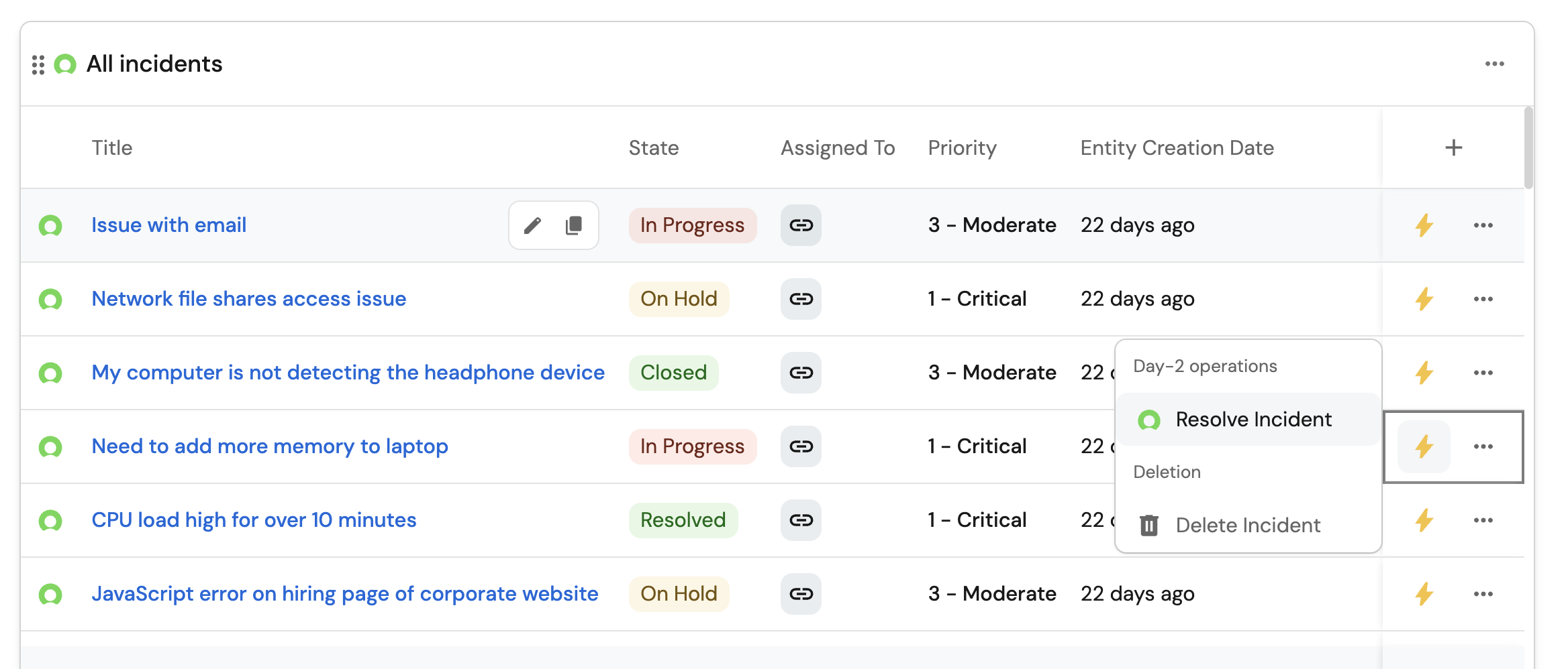 Now you should see the Delete Incident action in the self-service page. 🎉