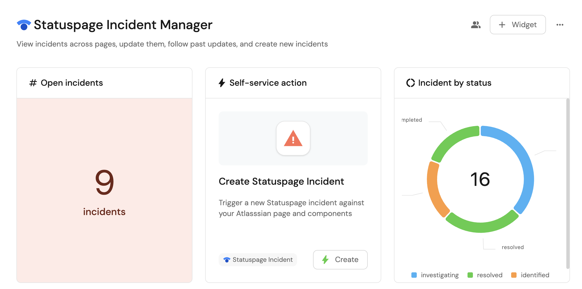 - Monitor and manage all Statuspage incidents and components from a centralized dashboard.