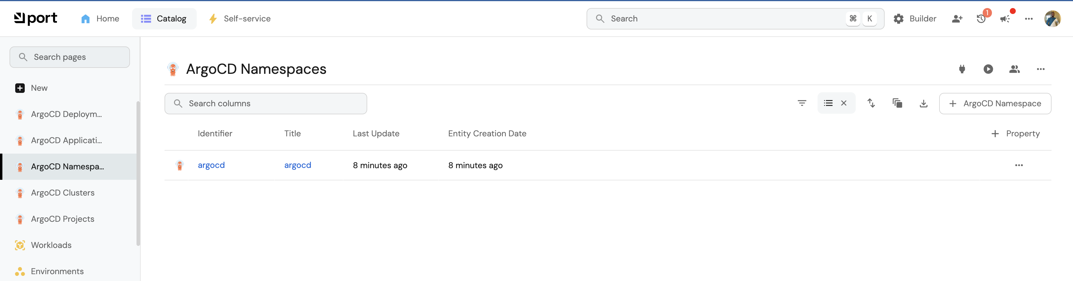 Create entities in your Software catalog. You will see a new page for each blueprint containing your resources, filled with data from your Kubernetes cluster (according to the default mapping that is defined here):